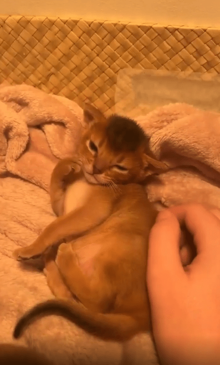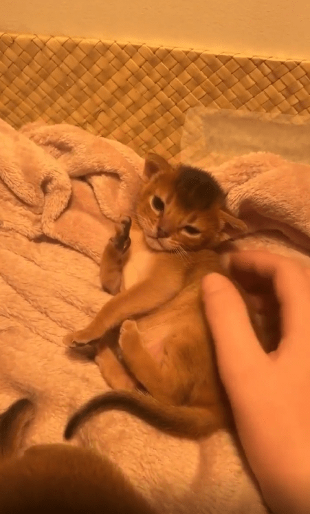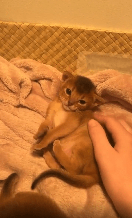 “나 예쁘지?” 쓰다듬을 받으며 사랑스러운 포즈를 취하는 아기 고양이