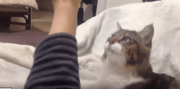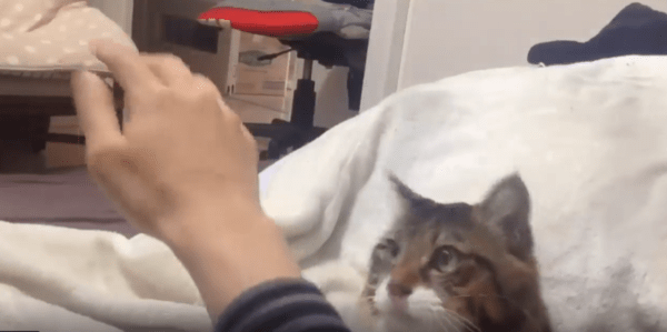 고양이가 집사의 팔을 붙잡으려 합니다. 가볍게 앞발을 뻗어 팔을 끌어당기고, 마치 "여기 좀 가만히 있어 봐."라고 말하는 듯한 태도입니다. 처음에는 그냥 손을 대는 정도였지만, 점점 더 적극적으로 팔을 감싸 안으려 합니다.