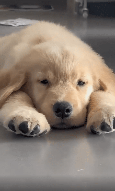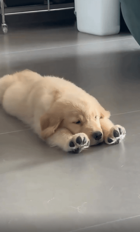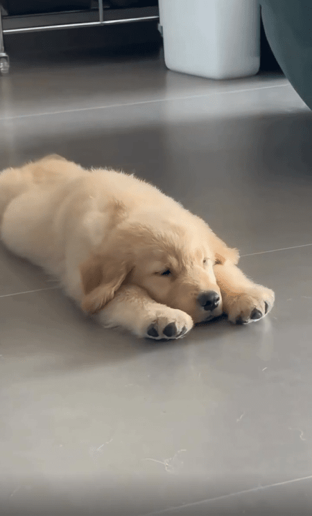 혹시 여러분도 이런 순간이 있지 않나요? 아무 생각 없이 바닥에 누워 온몸의 긴장을 풀고 완벽한 휴식을 취하고 싶은 날 말입니다. 오늘은 이 강아지처럼, 아무것도 신경 쓰지 않고 온전히 쉬는 시간을 가져보는 건 어떨까요?