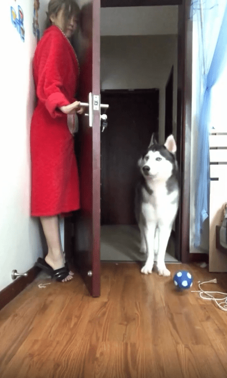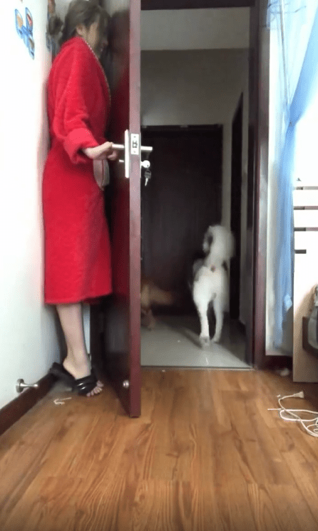 출처 : Reddit / 주인이 문뒤에 숨는다