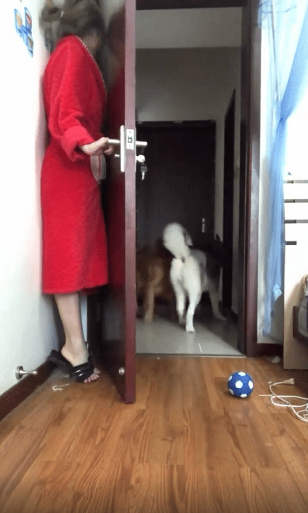 강아지가 방 안으로 들어옵니다. 그런데 주인이 보이지 않자 강아지는 방 안에 멈춰서 주위를 두리번거리기 시작합니다. 문 앞에 딱 서서 코를 킁킁거리지만 주인이 보이지 않자 강아지는 고개를 갸우뚱하며 다른 방 쪽으로 발길을 돌립니다.