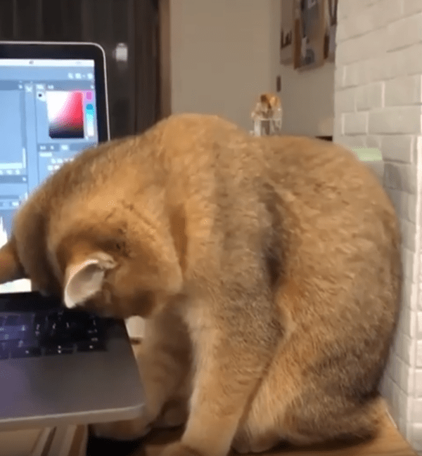 출처 : Reddit / 고양이가 노트북에 머리를 박고 자고 있다.