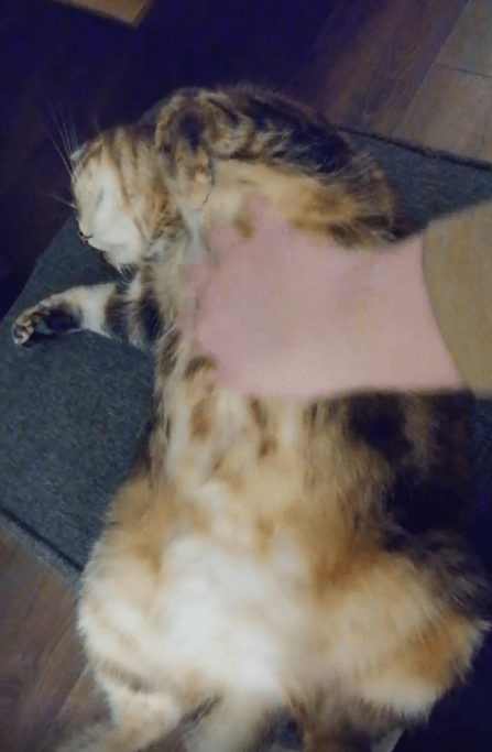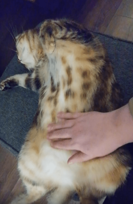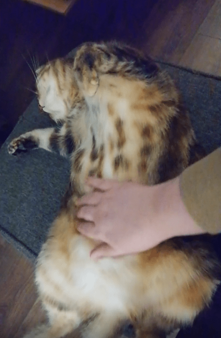 배를 까고 편안하게 쓰다듬을 즐기는 고양이