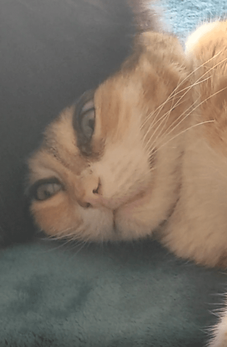 한 고양이가 바닥에 편안하게 누워 있습니다. 그러자 다른 고양이가 다가와 누운 고양이의 머리에 허리를 살짝 기대고 있습니다. 허리가 머리에 닿아 머리가 살짝 눌렸음에도 불구하고 누운 고양이는 전혀 신경 쓰지 않는 듯 평온하게 있습니다. 고양이 특유의 여유로운 모습이 그대로 드러나는 순간입니다.