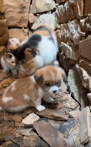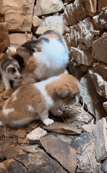 강아지는 고양이 가족의 움직임에 자연스럽게 섞여 함께 이동합니다. 고양이들 사이에서 전혀 낯설지 않은 듯, 무리의 일원처럼 행동하는 모습은 보는 이에게 깊은 인상을 남깁니다. 어미 고양이는 그 어떤 차별도 없이 강아지를 돌보고, 새끼 고양이들과 똑같이 품어주죠.