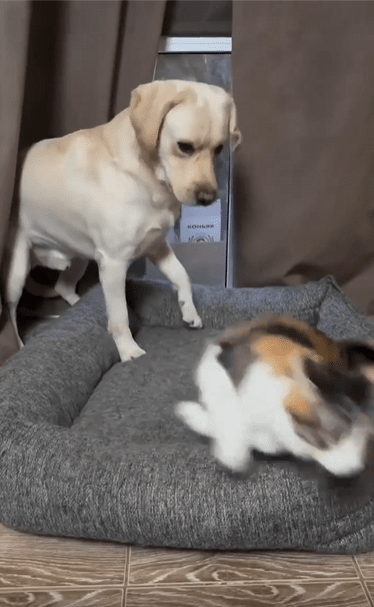 이 장면을 본 사람들은 웃으며 말합니다. “이 둘 사이, 룰이 아주 확실하네.” “고양이도 결국 졌다 ㅋㅋ” 웃음을 자아내는 짧은 영상이지만, 그 안에는 무언의 소통과 질서가 고스란히 담겨 있습니다.