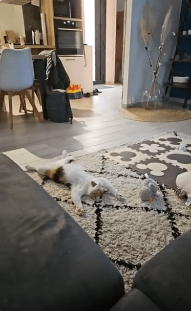 사실 우리도 가끔은 그런 시간을 필요로 하잖아요. 아무 이유 없이 그냥 누워 있고 싶은 날. 누가 뭐라 하지 않아도 그냥 멍하니 시간을 보내고 싶은 순간. 그럴 때 죄책감을 느끼기보다는, 이 고양이처럼 대자로 뻗어버리는 것도 나쁘지 않은 선택일지도 모릅니다. 꼭 뭔가를 해야 의미 있는 하루가 되는 건 아니니까요.