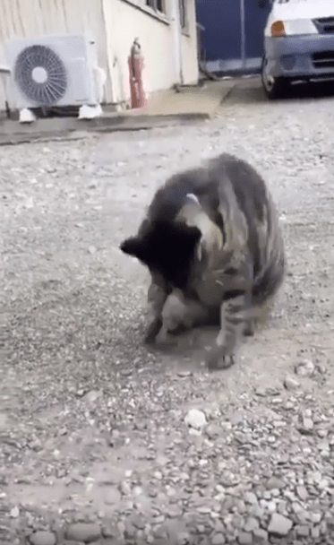 고양이는 평소처럼 앉아 있었습니다. 꼿꼿하게 세운 귀와 느긋한 눈빛, 살짝 말린 꼬리까지 익숙한 고양이의 자태였죠. 그런데 갑자기 그 작은 몸이 움찔하더니, 천천히 아래로 움츠러들기 시작합니다. 머리는 점점 낮아지고, 등은 둥글게 말리며 옆으로 퍼지더니, 어느새 몸 전체가 동글동글한 덩어리처럼 변해갔습니다. 마치 ‘나 사실 아르마딜로야’라고 주장이라도 하듯, 완벽한 구 형태를 만들어내려는 시도처럼 보였어요.