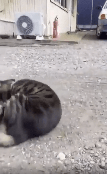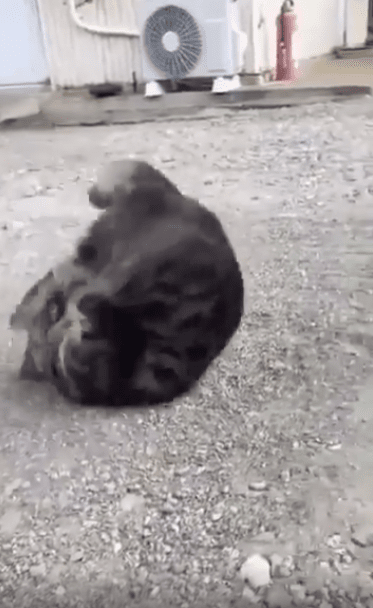 그 움직임은 고양이 특유의 유연함을 극대화한 결과물 같았습니다. 배를 쏙 집어넣고 다리도 거의 보이지 않게 숨긴 채, 땅에 바짝 붙어서는 작은 털뭉치처럼 변해가는 고양이의 모습은 어딘가 어설프면서도 너무 귀여웠습니다. 몸 전체를 말아 공처럼 되려고 애쓰는 듯한 그 순간, 고양이는 자신이 지금 뭘 하고 있는지도 모른 채 아주 진지했어요. 혹시 자신이 정말 아르마딜로라고 믿고 있는 건 아닐까 싶은 순간이었죠.
