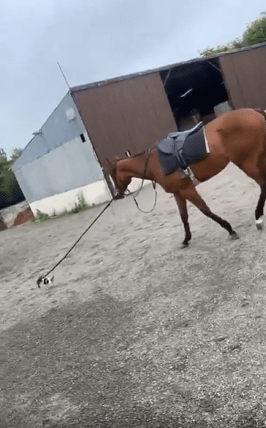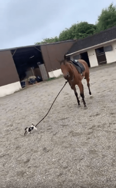 보통은 강아지가 말을 무서워할 수도 있잖아요. 하지만 이 강아지는 오히려 주인의 부탁을 받아 당당히 말을 데리고 왔습니다. 눈빛엔 망설임도, 두려움도 없었어요. 그저 "난 네 친구니까"라는 듯한 자연스러운 움직임뿐.