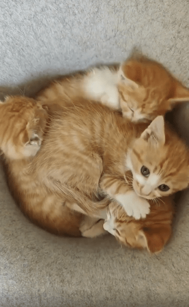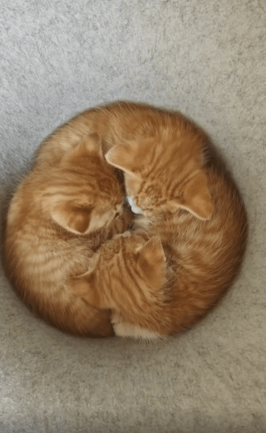 도넛처럼 생긴 푹신한 방석. 가운데 동그랗게 뚫린 공간 안에 새끼 고양이 세 마리가 꼭 붙어 웅크리고 있습니다. 털이 복슬복슬한 이 작은 존재들은 서로를 베개 삼고, 온기를 나누며 조용히 꿈나라에 빠져 있었죠. 이미 그 셋만으로도 방석 안은 포근하고 가득 차 보였지만, 잠시 후 네 번째 고양이가 살금살금 다가옵니다. 별다른 망설임 없이 그들 사이로 쑥 몸을 밀어 넣는 모습은 마치 자신도 당연히 이 조각 속에 들어가야 할 퍼즐 한 조각인 듯 자연스러웠습니다.