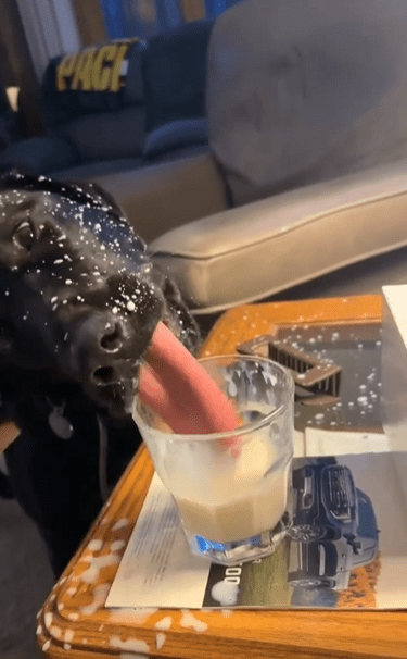 하지만 정작 당사자인 강아지는 아무렇지 않다는 듯, 더 깊이 더 넓게 혀를 휘두릅니다. 무언가 집중할수록 주변은 안중에 없는 듯, 컵 속 액체는 점점 줄어드는 대신 컵 밖이 더 난장판이 되어가죠. 컵 안은 진공처럼 집중된 액션의 중심, 컵 밖은 무심한 예술이 번진 현장이 된 듯한 느낌입니다.