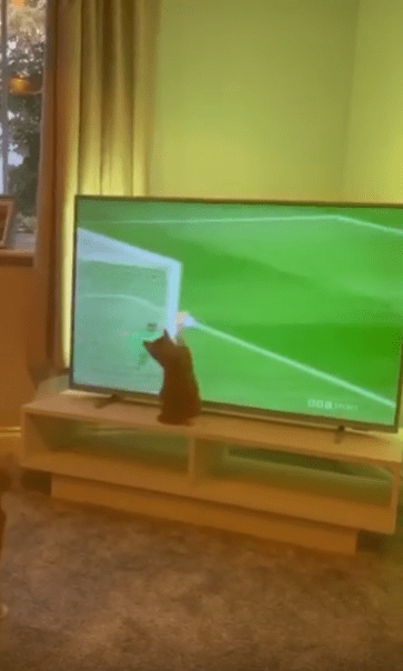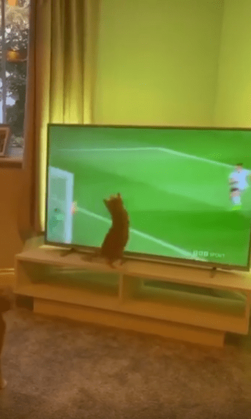 고양이는 단 한 번의 반응으로 끝내지 않습니다. 마치 실제 경기라도 보는 듯, 프리킥 타이밍에 맞춰 공이 날아갈 때마다 반복적으로 앞발을 TV 화면에 ‘탁탁’ 치며 반응합니다. 단순한 터치가 아닙니다. 정말 골키퍼처럼, 화면 속 공의 움직임을 따라가며 “막겠다”는 의지가 느껴질 정도의 동작이죠.