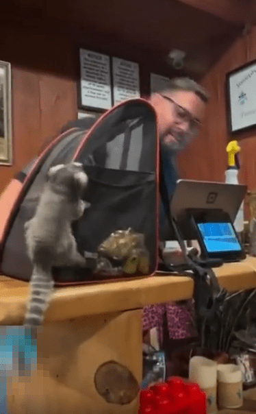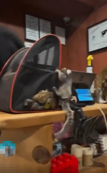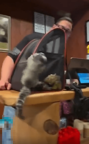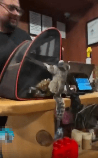 펫가방 사이로 펼쳐지는 주인과 원숭이의 좌우 숨바꼭질