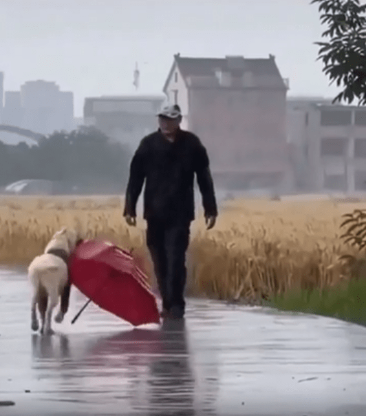 드디어 주인과 마주한 순간. 강아지는 우산을 조심스럽게 앞으로 들이밀며, 마치 “여기 있어요, 당신 젖지 말아요” 하고 말하는 듯한 눈빛을 보냅니다. 말 한 마디 없지만, 그 우산 하나에 담긴 마음은 너무나 선명합니다. 단순한 물건 하나를 전달하는 게 아니라, 누군가를 위하는 마음과 배려를 행동으로 전한 것이죠.