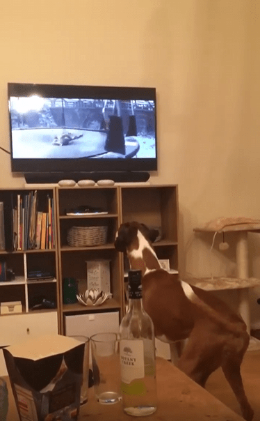 실내 한가운데 놓인 TV 앞, 강아지 한 마리가 꼿꼿이 서 있습니다. 두 발을 단단히 디딘 채 화면을 바라보는 그 눈빛엔 진지함이 가득하죠. 화면 속에선 한 마리의 강아지가 트램폴린 위를 신나게 뛰고 있습니다. 몸을 움츠렸다가 솟구치고, 다시 착지하고, 또 다시 튀어 오르는 반복된 점프. 경쾌한 리듬과 화면 가득 퍼지는 즐거운 에너지.