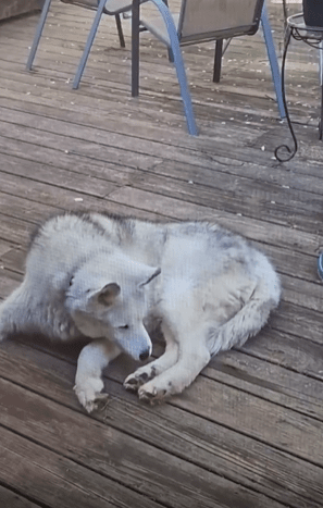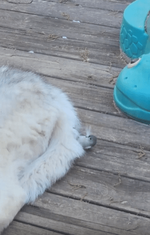 햇살 좋은 오후, 야외 나무 데크 위에 강아지 한 마리가 편안히 누워 있습니다. 앞발은 느슨하게 뻗고, 머리는 바닥에 푹 기대어 있고, 전형적인 ‘낮잠 타임’ 자세. 하지만 이 평화로운 순간에 작은 사건이 하나 벌어지고 있었으니—그건 바로 엉덩이 쪽에서 벌어지는 은밀한 도둑질이었습니다.