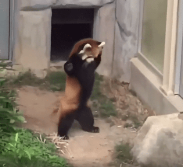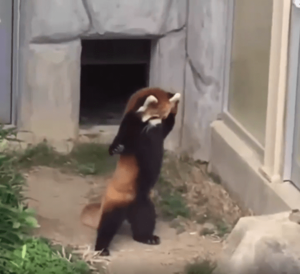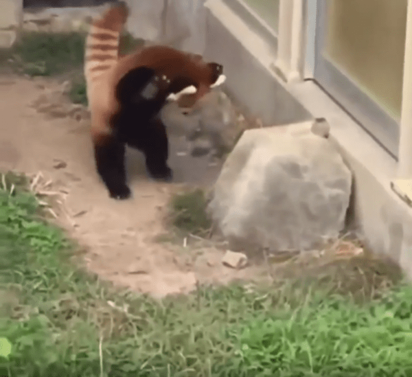 출처 : Reddit / 레서팬더가 돌을 보고는 위협적인 자세를 취한다