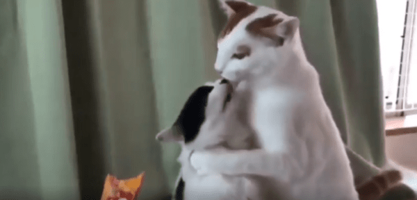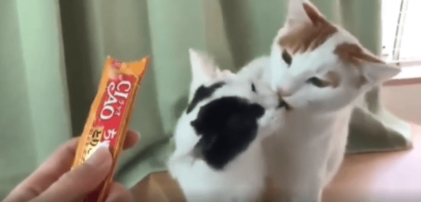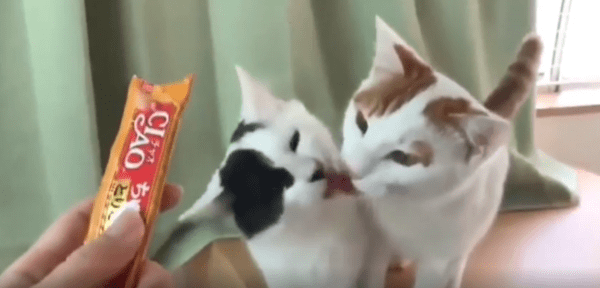 하지만 이 장면, 예상과는 조금 다른 방향으로 흘러갑니다. 두 고양이는 간식을 향해 나아갔지만, 혀가 닿은 곳은 간식이 아니라 서로의 혀끝이었습니다. 어처구니없는 접촉에도 불구하고, 고양이들은 전혀 당황하지 않고 계속해서 낼름거림을 멈추지 않습니다. 서로를 ‘간식’으로 착각한 듯, 미묘하게 겹쳐진 혀끝에서 반복적으로 낼름거림이 이어지는 모습은 정말이지 눈을 뗄 수 없을 만큼 웃기고 묘한 장면입니다.