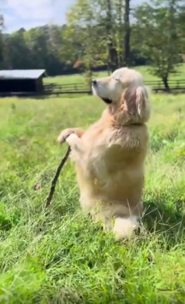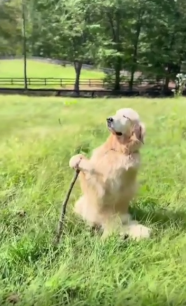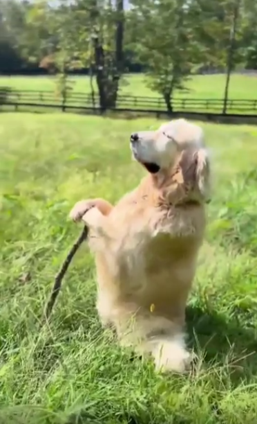 출처 : Reddit / 지팡이를 짚고 태양 바라보듯이 서있는 강아지