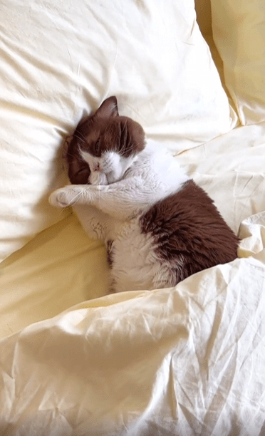 갈색 귀 끝만 삐죽 나와 있는 모습이 어찌나 귀여운지, 보는 사람까지 덩달아 미소 짓게 만듭니다. 그 고요한 숨결과 무심한 반응마저, 오히려 고양이의 완벽한 평화로움을 더 돋보이게 합니다.
