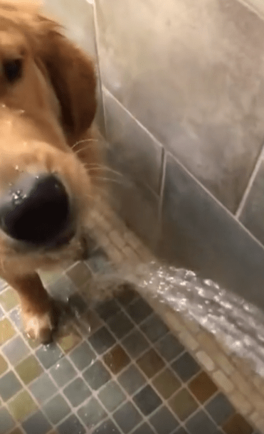 작은 타일 바닥과 하얀 벽, 누가 봐도 욕실로 보이는 공간. 주인이 샤워기를 틀자 고운 물줄기가 아래로 떨어집니다. 그 앞엔 골든 리트리버 한 마리가 조용히 자리를 지키고 있었어요. 입 주위로 떨어지는 물을 그는 마치 차분한 티타임을 즐기듯, 조용히 혀로 핥아먹습니다. 물이 입가에 닿을 때마다 혀끝으로 툭툭 건드리며 받아들이는 모습엔 절제와 여유가 느껴졌죠. 눈빛도 말합니다. “응, 좋아. 이 정도면 괜찮네.”
