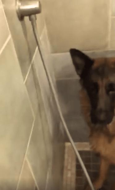 두 강아지는 마치 서로 다른 종족처럼 보였어요. 하나는 "감사히 잘 마십니다", 다른 하나는 "감히 날 적셔? 이거나 먹어라!"라는 태도. 골든 리트리버는 끝까지 얌전하고 품위 있었고, 셰퍼드는 마치 샤워기에게 복수라도 하려는 듯 온몸을 써서 물을 상대했습니다.