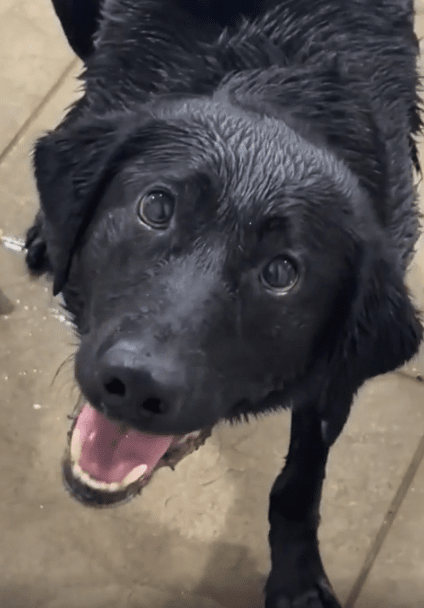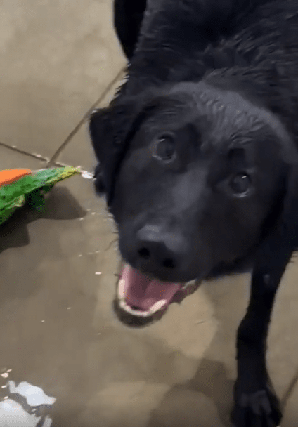 문을 열자마자 눈에 들어온 건, 바닥 가득 흩어진 장난감 물고기들. 그 가운데, 축축하게 젖은 채로 앉아 있는 까만 강아지 한 마리가 숨을 헐떡이며 주인을 바라보고 있었습니다. 털끝마다 물기가 맺혀 있었고, 그 눈빛은 어쩐지 반짝이고 있었죠.