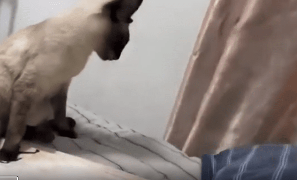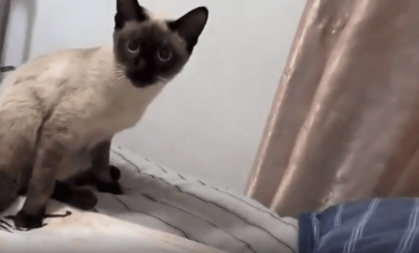 누워 있던 고양이는 그대로 침대 아래로 굴러 떨어졌습니다. 놀란 것도 잠시, 그대로 사라진 고양이의 흔적을 바라보며 남은 고양이는 고개를 푹 숙인 채 어딘가 어정쩡하게 멈춰 섰습니다. “…내가 뭘 한 것도 아닌데…?”라고 말하는 듯한 그 뒷모습이 더더욱 웃음을 자아냈죠.
