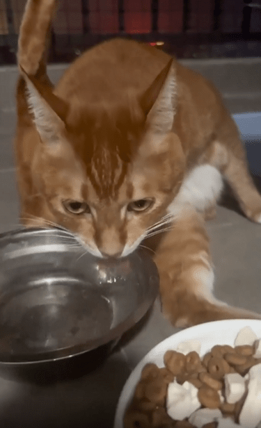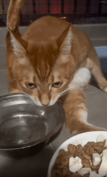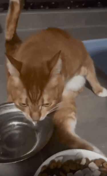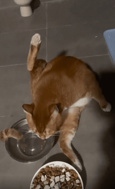 고양이 한 마리가 물그릇 앞에 앉아 있었습니다. 그런데 그 자세가 심상치 않았습니다. 보통이라면 우아하게 앞발을 모으고 물을 살짝 핥아먹을 법도 한데, 이 고양이는 다소… 기묘한 자세로 물을 마시고 있었죠.