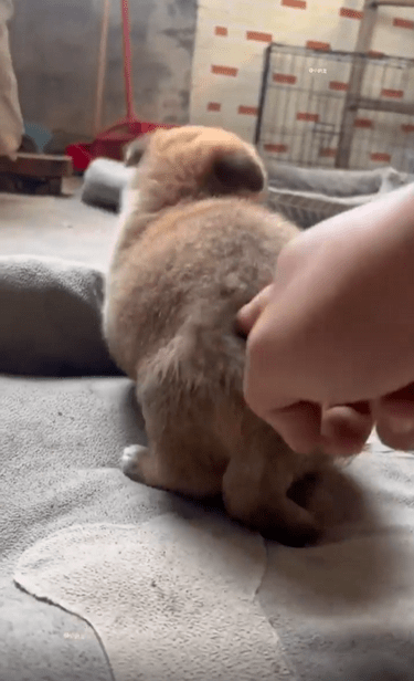 방 안 한가운데, 말랑한 배와 짧은 다리를 가진 새끼 강아지 한 마리가 주인 앞에 앉아 있습니다. 귀는 축 처져 있고, 눈은 아직 장난기보다 순수함이 더 많은 그 얼굴. 주인의 손길은 다정했지만, 동시에 살짝 장난기가 섞여 있었죠.
