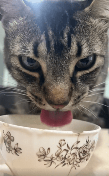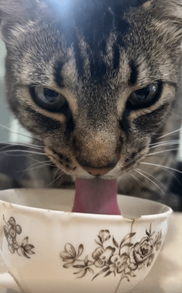혀는 바쁘게 움직이지만, 눈동자는 꿈쩍도 하지 않습니다. 찰박찰박, 컵 속에서 물이 조금씩 사라지는 와중에도 고양이의 눈은 깜박임 없이 똑바로 렌즈를 향해 고정돼 있습니다. 시청자의 입장에서는 마치 “그래, 나 물 마신다. 근데 너 지금 뭐 하냐?”는 무언의 질문을 던지는 듯한 묘한 압박감마저 느껴집니다.