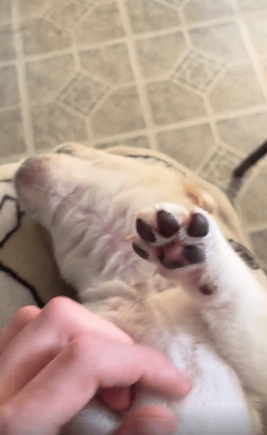 주인이 조심스럽게 강아지의 배 위에 손을 올리자, 강아지의 반응은 생각보다 단호합니다. 처음에는 잠시 멈칫하다가, 이내 네 발을 허공에 뻗어 온몸으로 발버둥을 치기 시작하는 것이죠. “그건 내 배야! 내 허락 없이 만지지 마요!”라는 듯이 말이죠.