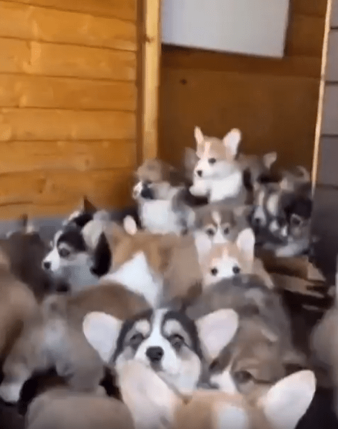 조용했던 공간, 그 한쪽의 문이 천천히 열립니다. 별다른 소리도 없고, 특별한 연출도 없지만 그 순간—쏟아지듯 나오는 수많은 새끼 강아지들.