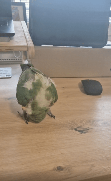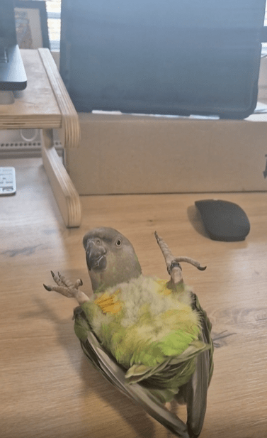 이 모든 과정은 단 몇 초였지만, 그 안에 담긴 신뢰와 훈련, 그리고 유쾌한 장난기까지 고스란히 느껴졌습니다. 가장 인상적인 건 앵무새의 표정. 구르고 간식을 받은 후에는 꼭 이런 말을 하는 것 같았죠.