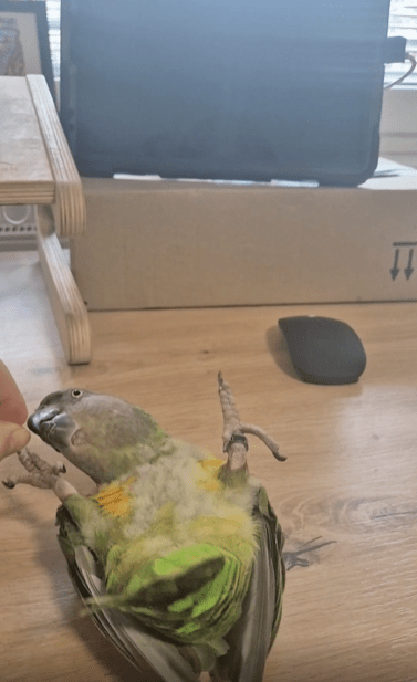 주인이 손가락을 살짝 흔들자, 앵무새는 기다렸다는 듯 몸을 움찔하며 앞으로 몸을 말아 구릅니다. 아주 작고 완벽한 ‘앞구르기’. 다리와 머리, 날개가 부드럽게 연결되며 마치 하나의 둥근 공처럼 몸을 말아내는 그 동작은, 보는 이로 하여금 감탄을 자아내게 했습니다. 구르기가 끝나기도 전에, 주인은 기다렸다는 듯 작고 노란 간식을 내밉니다. 그리고 앵무새는 마치 당연하다는 듯 당당하게 간식을 받아먹죠.
