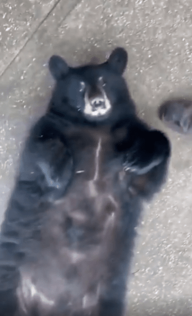 출처 : Reddit / 곰 한마리가 바닥에 등을 대고 누워있다 사람이 다가와 곰의 배를 쓰다듬어 준다