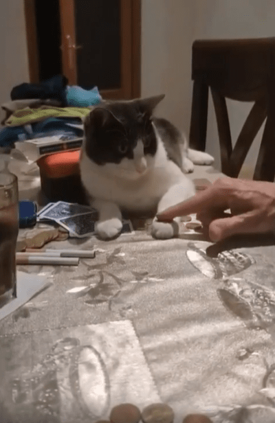 그런데 다음 순간, 모든 사람이 놀랄 일이 벌어집니다. 고양이는 앞발을 살짝 움찔하더니, 자기 발 위에 올려진 동전을 똑같이 튕겨올려 한 쪽 앞발로 툭 낚아챕니다. 그 동작은 어설프지 않았고, 의도된 듯 정확하며, 마치 “봐, 나도 할 수 있어”라고 말하는 듯한 표정이었습니다. 주인은 놀라고, 보는 이도 감탄합니다. 지금 고양이는 단순히 따라 한 것이 아니라, 완벽히 이해하고 흉내낸 것처럼 보였으니까요.