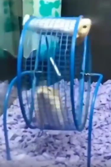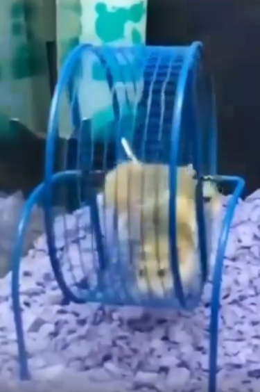 출처 : Reddit /  햄스터 한마리가 챗바퀴를 열심히 달리고 있고 다른 햄스터는 회전하는 챗바퀴에 누워있다
