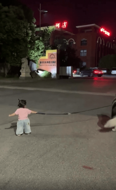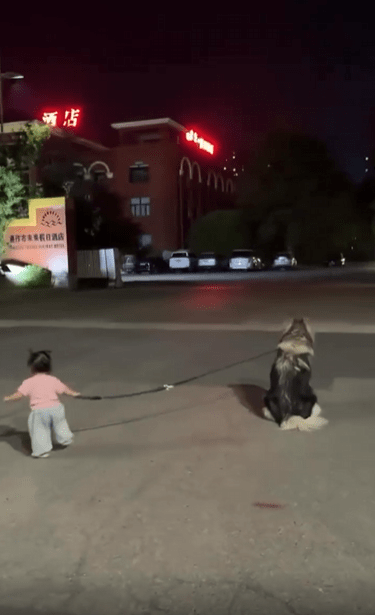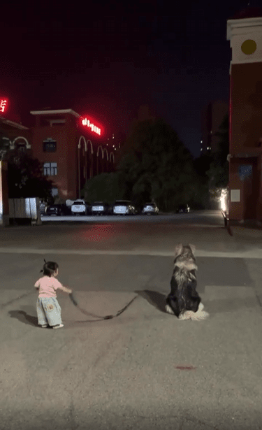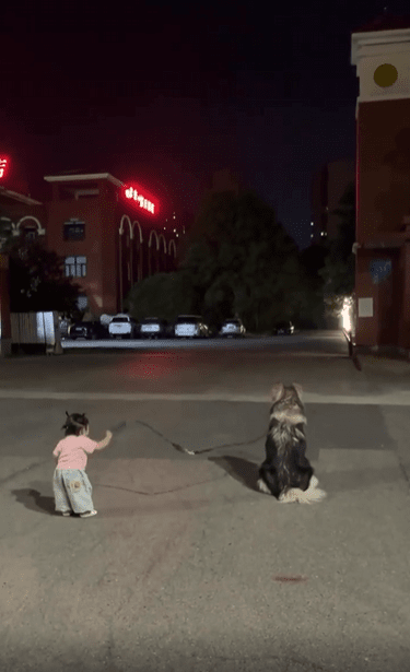 어두운 밤, 가로등 불빛이 은은히 비추는 야외. 조용한 길 한복판에 작은 소동이 벌어졌습니다. 귀엽고 어린 여자아이가 대형견의 목줄을 손에 쥔 채 서 있습니다. 그녀의 작은 손엔 진심이 가득 담겨 있었죠. 당기고, 또 당기고. "이쪽이야, 가자!" 말하지 않아도 그 작은 팔의 동작만으로도 간절함이 느껴집니다.
