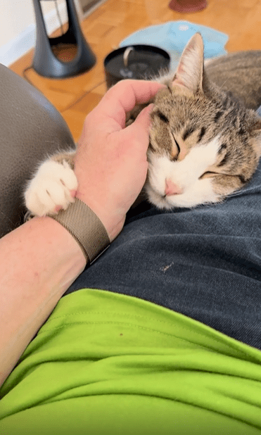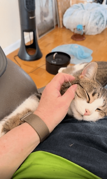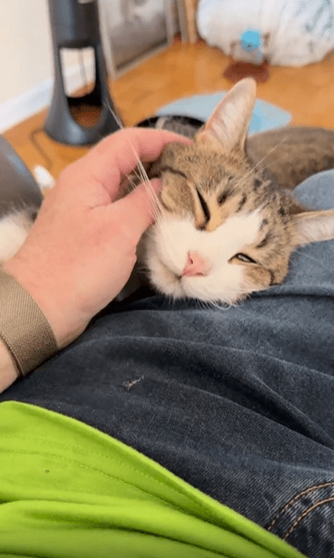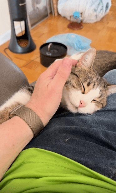 이 장면을 보고 있으면 누구라도 마음이 사르르 녹아내릴 수밖에 없습니다. 평범한 하루의 한 조각이 이렇게나 따뜻할 수 있다니, 그저 함께 있는 것만으로도 충분한 시간이라는 걸, 이 고양이와 주인은 조용히 보여주고 있네요.