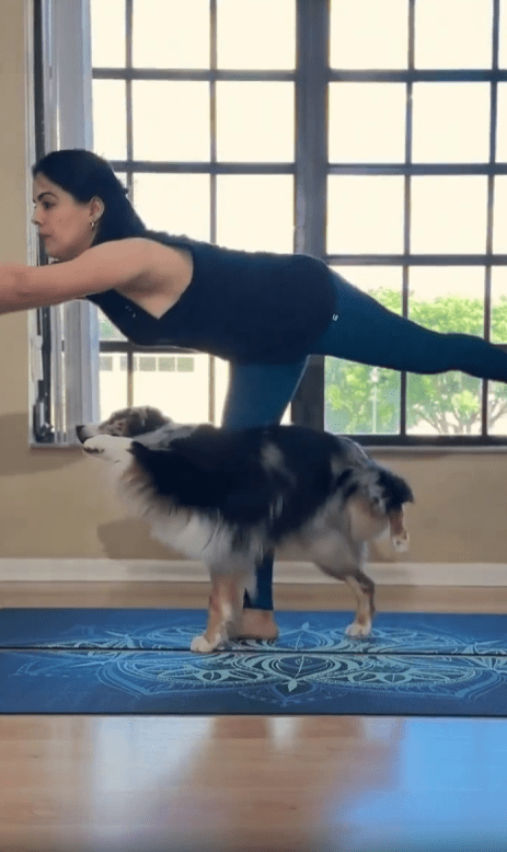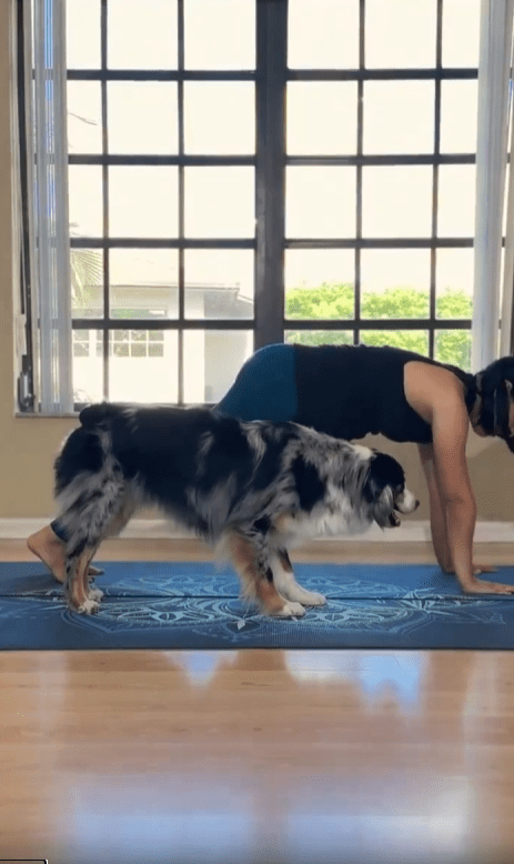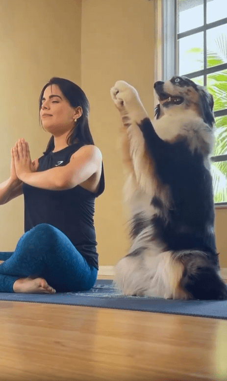 햇살이 부드럽게 들어오는 실내. 바닥에 펼쳐진 요가 매트 위에서 한 여성이 조용히 자세를 취하고 있습니다. 상체를 숙이며 호흡을 가다듬는 그 앞에는, 놀랍게도 똑같은 자세를 시도 중인 강아지 한 마리가 있습니다. 앞발을 매트에 단단히 고정하고 엉덩이를 뒤로 쭉 뺀 채, 사람과 똑같은 방향으로 몸을 늘이는 이 모습—그야말로 ‘도그 요가’의 정석이라 부를 만합니다.