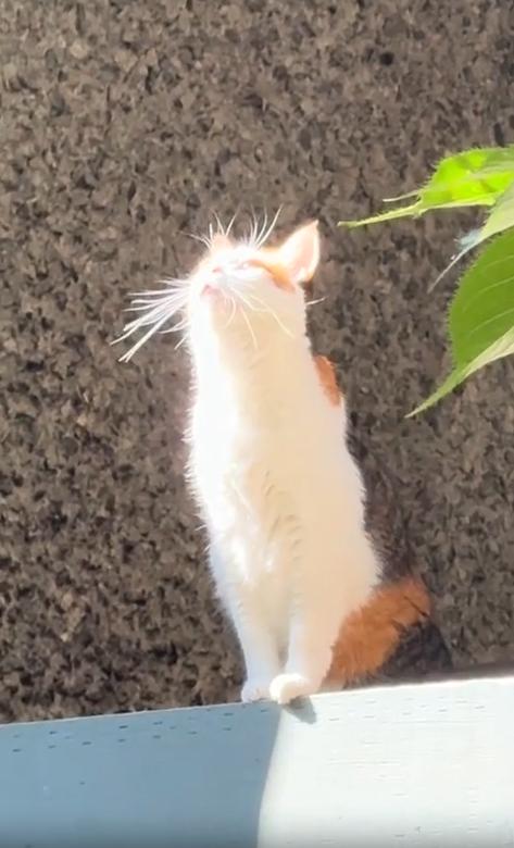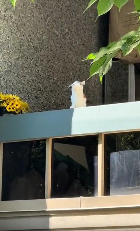 빛을 마주한 고양이, 베란다 위의 명상가