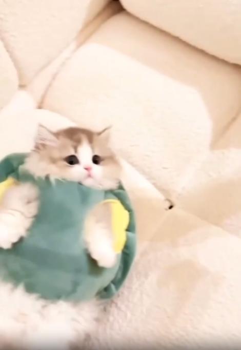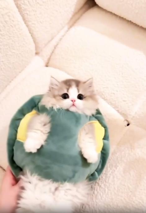 주인의 손이 조심스럽게 다가가 ‘거북이’의 등을 살짝 들어 올리는 순간, 모든 게 밝혀졌습니다. 그건 거북이가 아니라, 거북이 인형 등껍질을 뒤집어쓰고 소파 위를 기어가던 새끼 고양이였던 것이죠. 작은 고양이는 깜짝 놀란 듯 눈을 동그랗게 뜨더니, 잠시 멈칫하다가 다시 태연하게 “아무 일 없었어요” 하는 표정으로 몸을 둥글게 말았습니다.