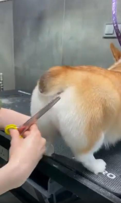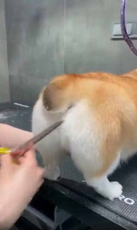 미용사는 조심스레 웃으며 다시 시도하지만, 코기의 꼬리는 다시 한 번 슬쩍 피합니다. 영상 속 이 장면은 짧지만, 그 안에 담긴 코기의 진심은 너무나도 또렷합니다.