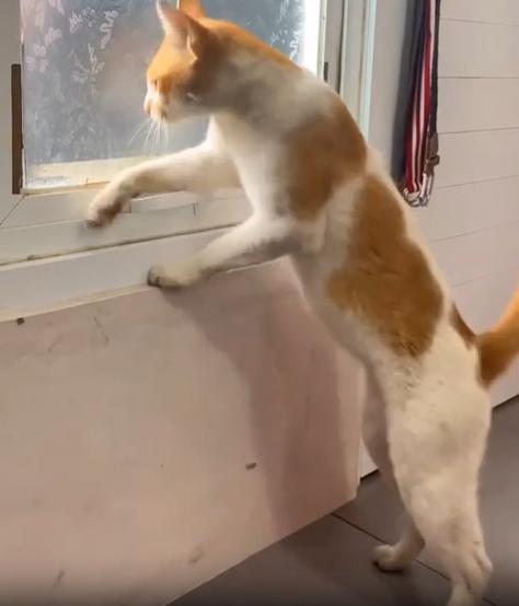 창문 앞에 선 고양이 한 마리. 고요한 바깥 풍경을 응시하던 그 녀석은 어느새 앞발을 살짝 들어, 창문 손잡이를 향해 조심스럽게 다가갑니다. 손잡이는 아래로 누르는 것이 아니라 위로 들어 올려야 열리는 방식. 그런데 고양이는 정확히 그걸 알고 있었던 듯, 앞발을 걸치더니 툭—하고 위로 들어 올립니다.