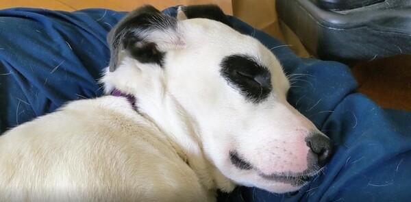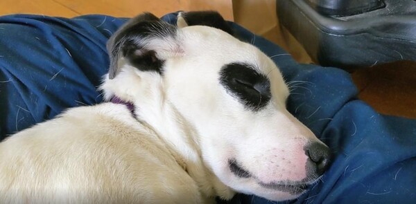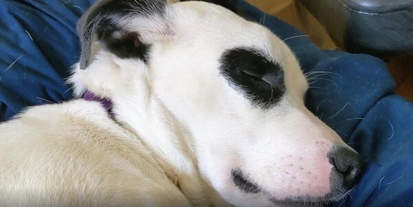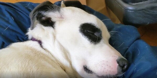 강아지는 전혀 개의치 않는 듯 얼굴을 옆으로 더 돌려 눕고, 소리는 점점 더 깊어집니다. 몸은 천사처럼 얌전히 있지만 귀는 온갖 고난을 겪는 느낌이랄까요. 주인은 슬쩍 카메라를 들고 다가가 보지만, 그 엄청난 소리의 주인공은 변함없는 자세로 세상 편하게 자고 있습니다. 이 강아지에게 이 세상 걱정은 아무 의미가 없어 보입니다.