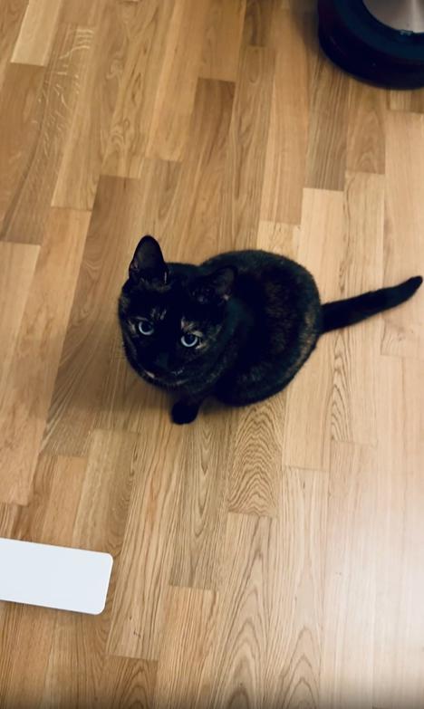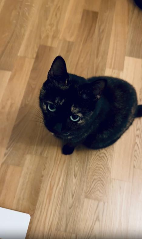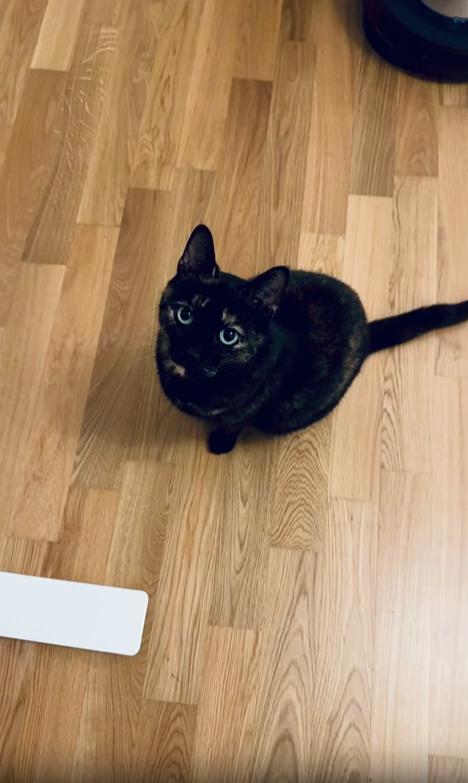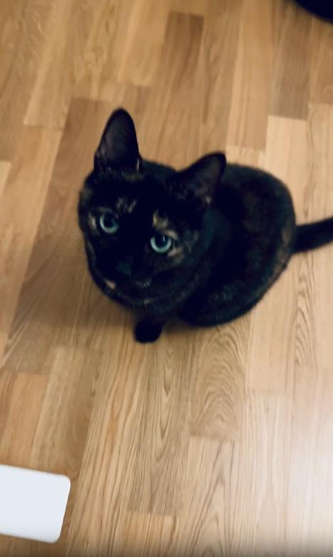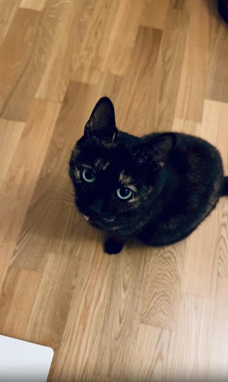 출처 : Reddit / 거실에 검은 고양이가 앉아있다 잠시 주인을 바라보더니 한참후에 야옹 하고 운다