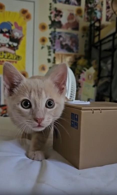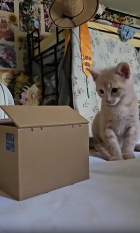 눈 깜짝할 사이, 작은 상자 하나가 고양이에게는 수많은 상상과 감정의 공간이 됩니다. 그 안에 뭔가 재미있는 게 있을지도 모른다는 기대, 그리고 혹시 나쁜 게 들어있지는 않을까 하는 경계심. 그 복잡한 감정이 고스란히 고양이의 눈동자와 움직임에 담겨 흐릅니다.