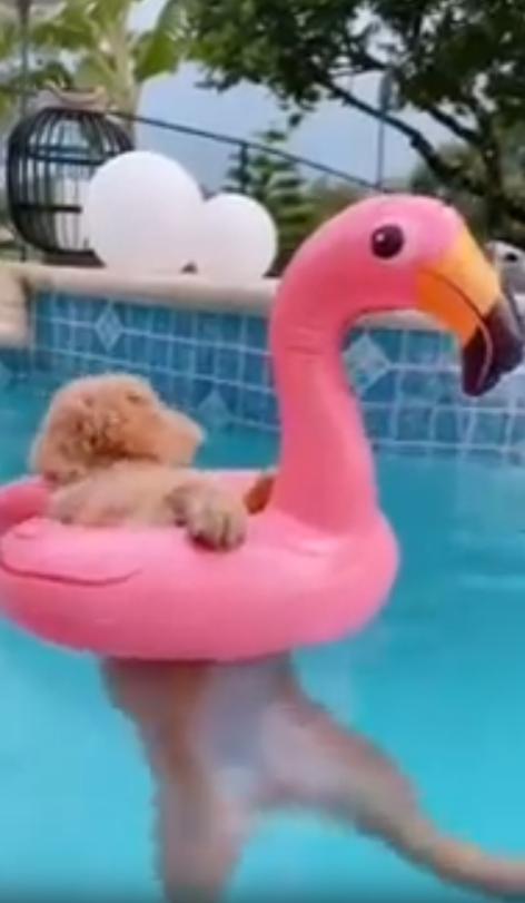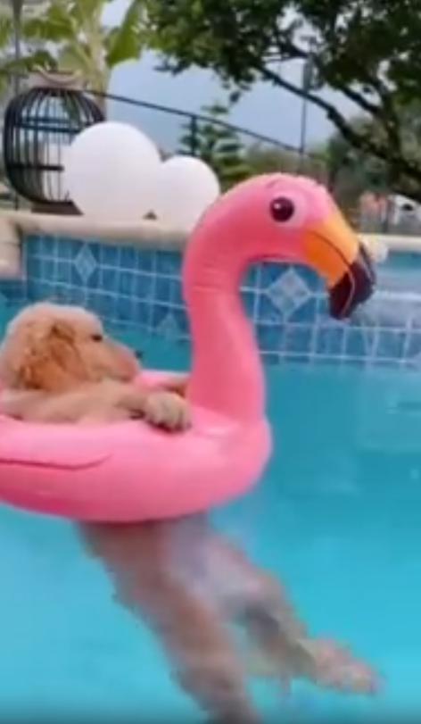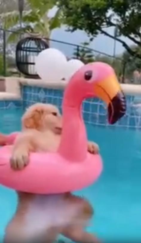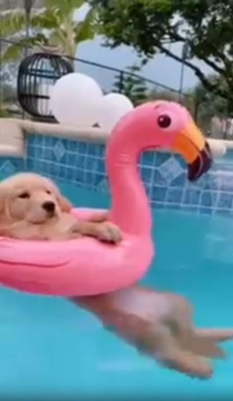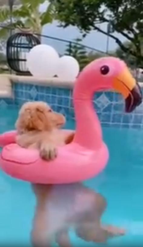 무더운 여름날, 바람도 지치고 햇살은 가차 없이 내리쬐는 가운데. 야외 수영장 한쪽에서 분홍색 튜브가 조용히 떠다니고 있습니다. 이 튜브, 자세히 보면 단순한 튜브가 아닙니다. 플라밍고 모양에 가운데 구멍이 쏙 나 있는 바로 그 디자인. 그런데 그 구멍을 빈틈없이 채운 것은 바로 한 마리의 작고 귀여운 강아지입니다.